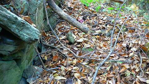 | 直径12.0m、高さ5.0mの積石塚とのことですが、 封土は失われ竪穴式石室の下部のみが残されて いました。