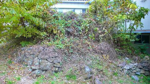 | 校舎の狭間に隠れるようにして残っている古墳。