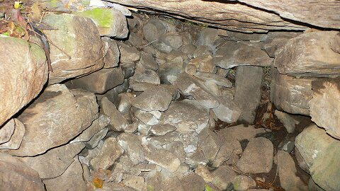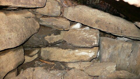 | こちらが奥壁側。 平たい長方形の割石を横積みにしています。 奥壁は3段以上。 側壁も同様です。