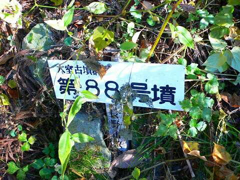 | 87号墳から獣道に戻り、数十メートル登っていくと 正規の見学道に合流します。 その合流点下にあるのが、88号墳。