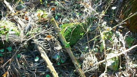 石材が露出してますが、枯れ枝や落ち葉が堆積していて 細部の見学は困難。