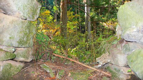 側壁はやや持ち送っており、石材の大きさも不揃いです。 表面処理も奥壁以外はあまりなされてないような・・・