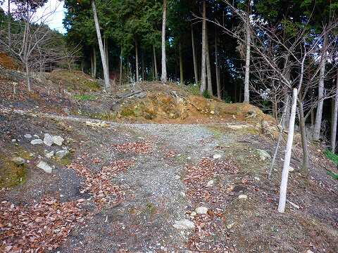 | クネクネ曲がった林道を200mほど登ると、1号墳の 墳丘が。
