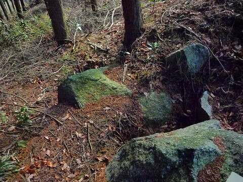 奥壁付近だけがいい状態で残存してます。 現状では玄室長2m、幅1.5m、高さ1.5mほど。 かなり床面が埋まってるようで、側壁が持ち送ってるのか よく分からん・・・
