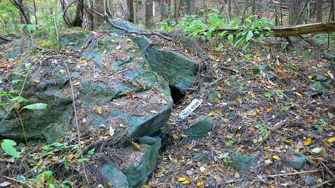 巨大な石材が落ち込んでいて、入室不可。