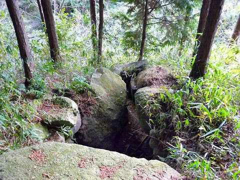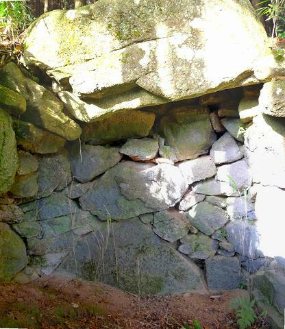 床面がかなり埋まってますが、奥壁下部に大きな 鏡石を据えてるようです。 側壁は持ち送ってますが、天井部は平天井だった ようです。