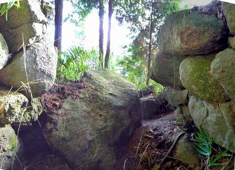 下のパノラマ写真は側面から石室を。 向って左が開口部。