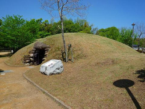 こちらの2号墳には石棚がありませんが、その分1号墳 よりはやや奥行きが短いようです。 推定で幅2m、高さ3m、玄室長2.5mくらい。 石室全長は5.6mと、羨道が消失してる分、1号墳より 石室全長も短くなってます。 石材は1号墳と同じく花崗岩。 石材構成にも共通点が感じられます。