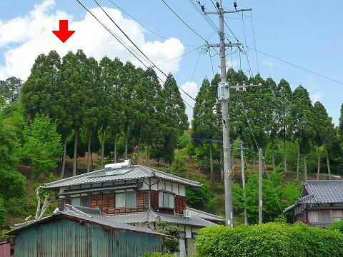 矢印辺りの山腹にあります。 写真右端がオーナーの野田さん宅です。