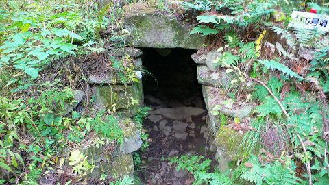 下部に閉塞石?らしき石材が見える。 石室全長6.25m、羨道長1.75mとあるのだが、 実際には羨道は3mくらいはありそう。 玄室サイズの誤差が羨道にきてるのか?
