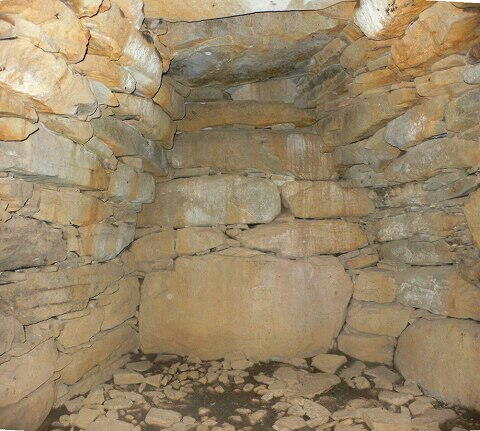 これまた非常に状態の良い石室。 玄室長4.5m、奥幅1.75m、中央幅2.25mと 極端な胴張りの床面プラン。 玄室高さ1.7m。 平たい割石を持ち送った側壁は、高い完成度を誇って ます。 資料には「奥壁上部開口」とあるのだが・・・?