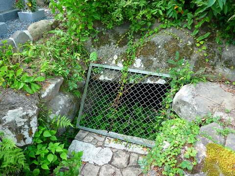 | 集落の道路を上がり、グルッと右に回って高架道路に 出ると、突き当たりに墓地があります。