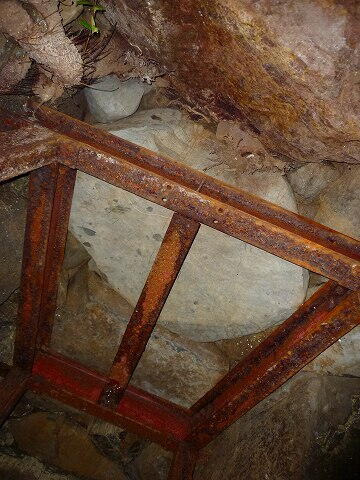 補強の鉄骨がいかめしい。 天井石の底面は平面加工されてるようです。
