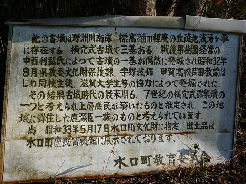 | 1号墳のトップの写真、古墳群の説明板のすぐ後ろの 藪が、波涛ヶ平2号墳。