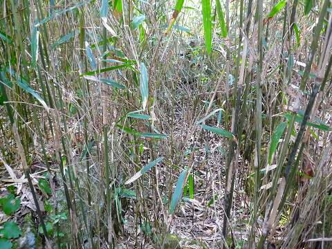 距離にして5mほどなのですが、向こうが見えないほど 密集した笹薮に阻まれ、大変な目に遭いました・・・。 |