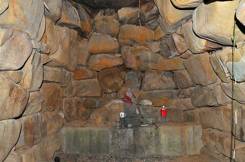 これはなかなかのデキ! ブロック状に大きさを揃えた割石をきちんと積んでます。 奥壁前には棺台?の石材がありますが、これは築造 当時のものかなぁ・・・?
