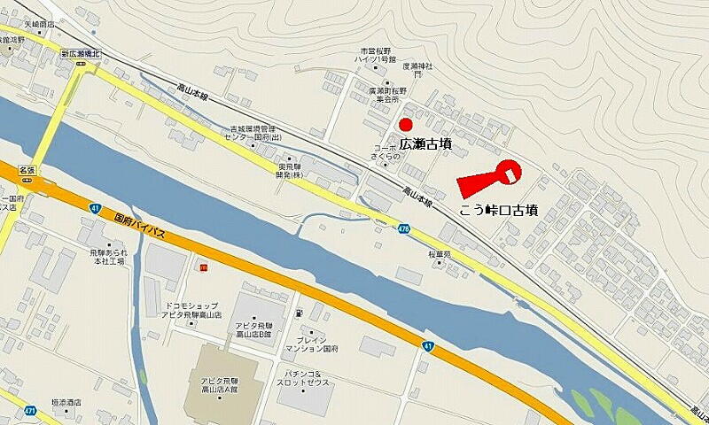| 高山市国府町広瀬、宮川の北岸、国道41号線名張 交差点東の住宅街に保存されてる前方後円墳です。 県下最大級の横穴式石室が残ってます。 また、この古墳の西100mほどの位置に広瀬古墳が あるので、併せて見学するといいでしょう。