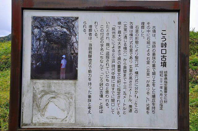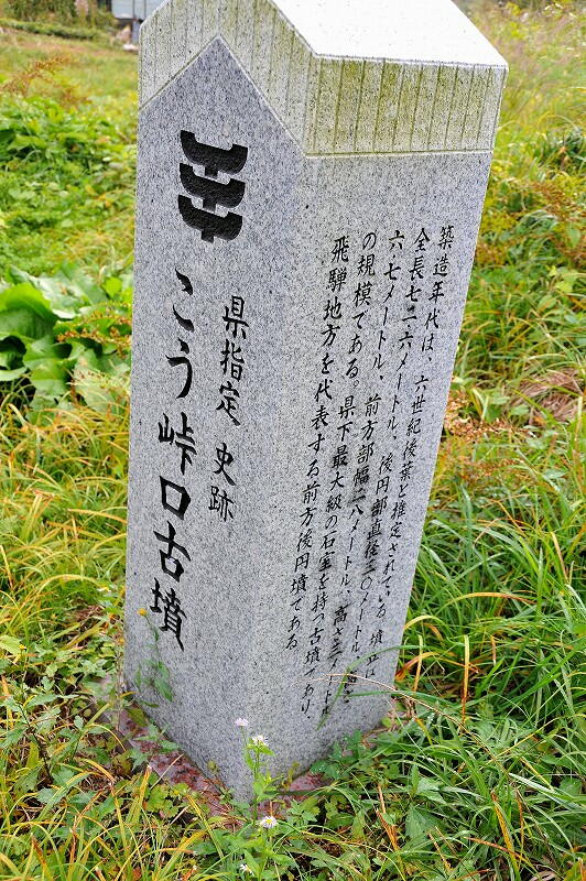 | こう峠口古墳 総合評価 | ビギナーお薦め度 |     | とりあえず見学しておきましょう。 | マニアお薦め度 |      | 県下最大というプレミア石室にクラクラしそう。 | 交通アクセス状況 |  | 墳丘北側に駐車スペース有り。 下車後徒歩約1分。 | 観賞のポイント | ま、これは石室のあらゆる部分が見どころですな。(,,゚Д゚) ガンガレ! | その他の注意点 | ライト必須。 夏季はマムシ・ハチに注意。 |