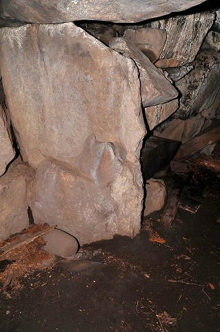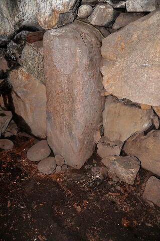 この玄門、袖石だけが出っ張ってて、羨道と玄室の幅は ほぼ同じ。 これは近隣の石室にもちょくちょく見られる形式です。