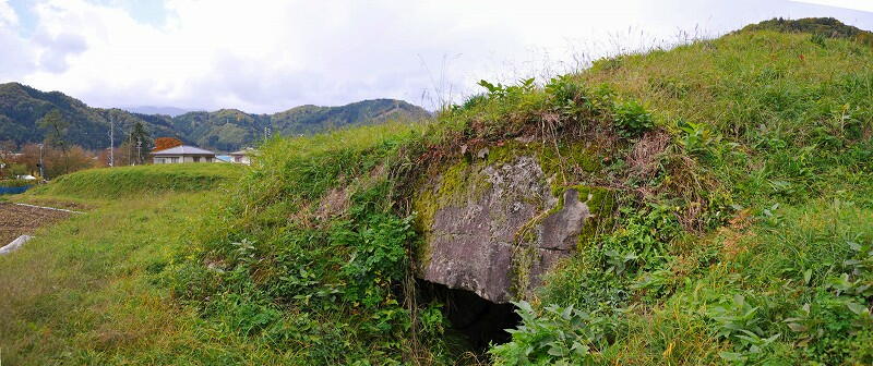 下のパノラマ写真は開口部前から。 奥が前方部。