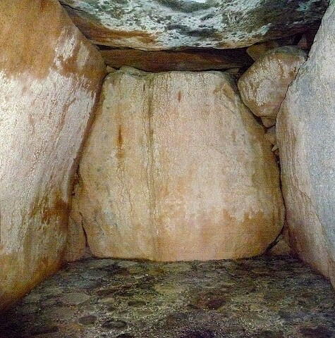 各面が巨石の一枚岩で構成された巨石墳。 玄室長3.39m、幅2.44m、高さ2.16m。 奥壁の鏡石の縁に沿って側壁材が持ち送ってます。 こ、これは凄いわ・・・