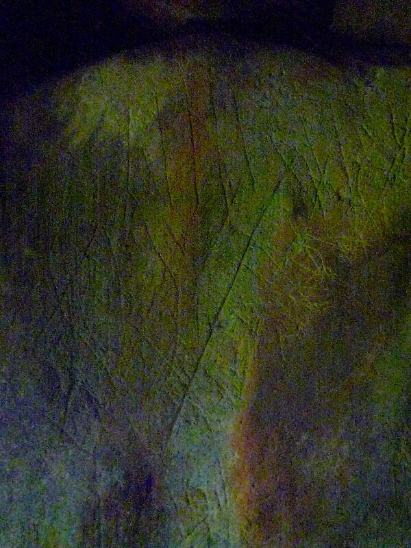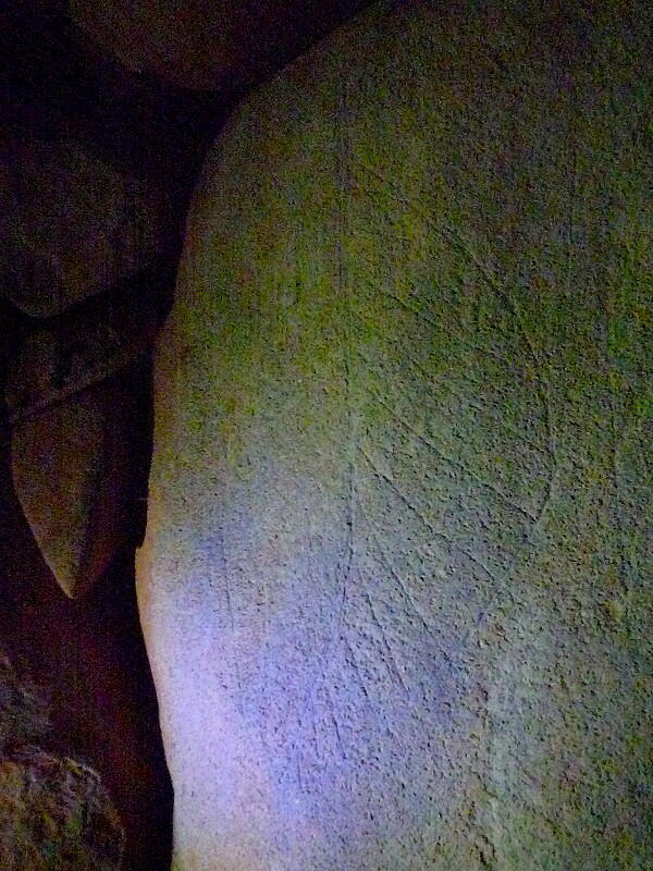 この右側壁に線刻壁画が集中してます。 以下の写真は線刻のアップ。