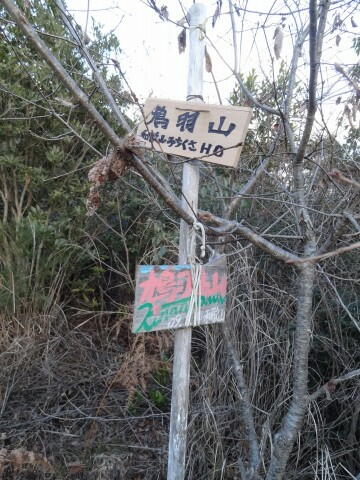 | 東側から登山道を登ってくると、山頂に左記の標識が あります。 これを過ぎて西に20mほど行った南斜面に古墳群が 分布してます。
