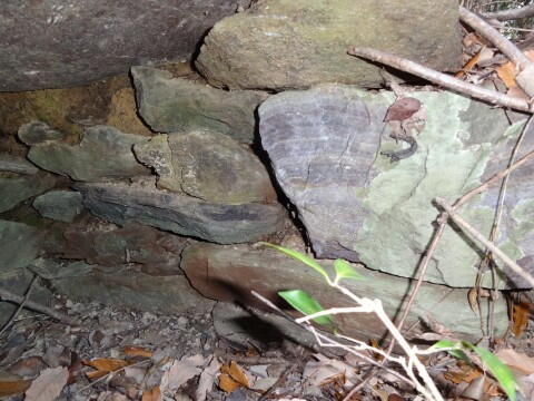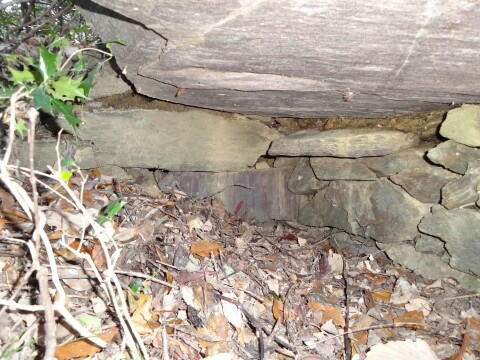 奥壁は小割りした石材を乱石積み。