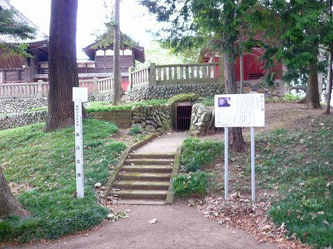藤岡市本郷、諏訪神社境内に3基の古墳が保存されて