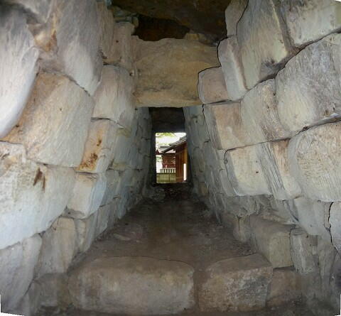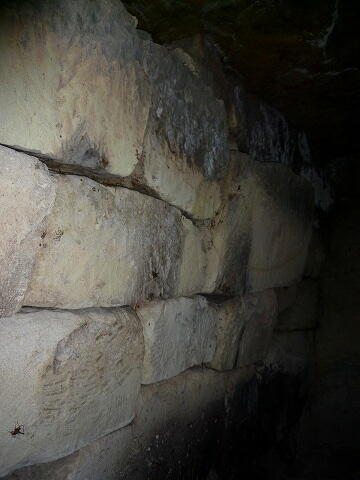 羨道後半部分の側壁は、凝灰岩の截石積み。