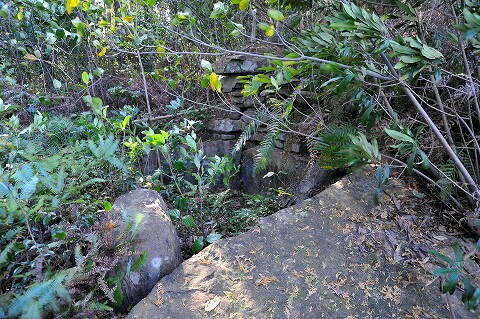 三方の壁面下部に平たい腰石を据えた、楠浦新田古墳