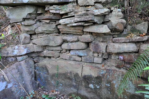 平たい割石を小口積み。