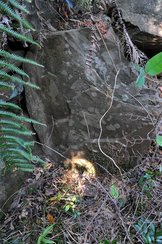 この標識から獣道を10mほど右上に上がると、天井部を