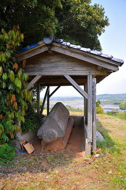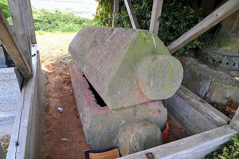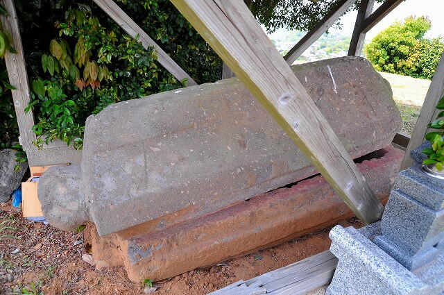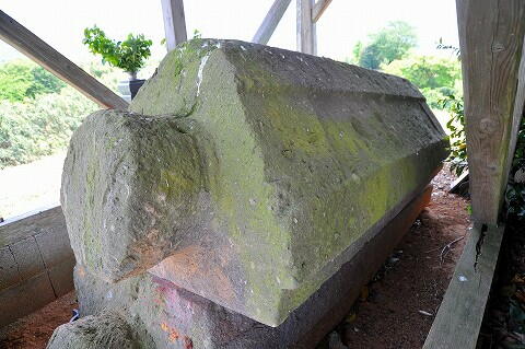墳頂には覆屋があり、舟形石棺が安置されてました。