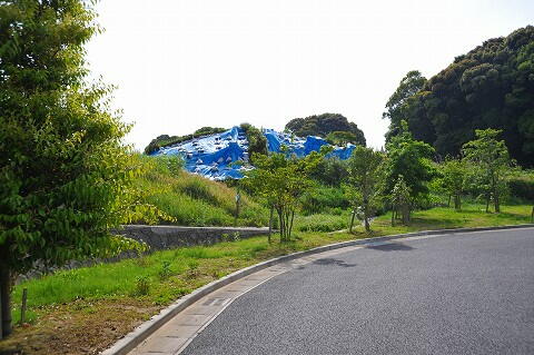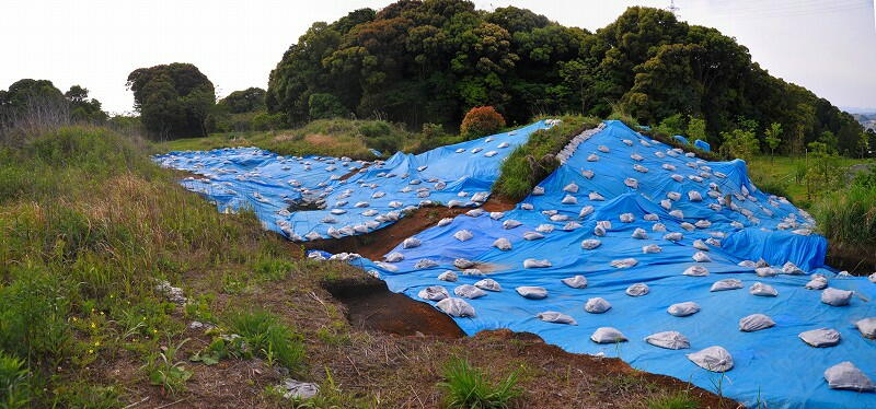 このブルーシートの下に地下式横穴墓が