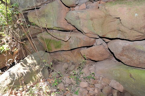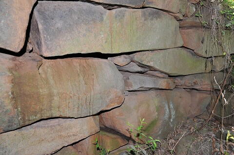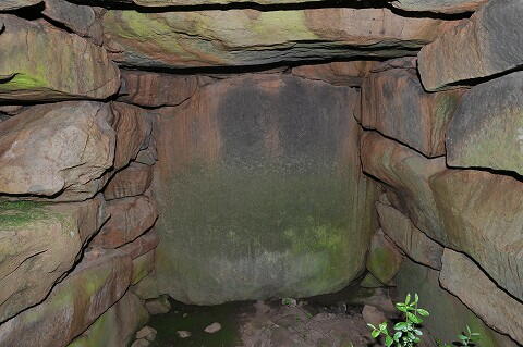 奥壁は大きな鏡石、側壁は横長の割石を5〜6段積み。