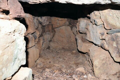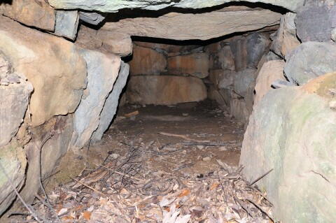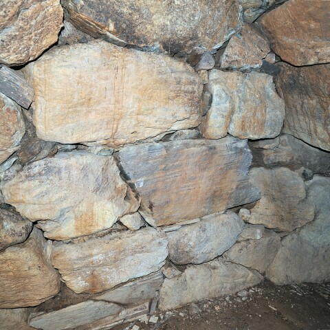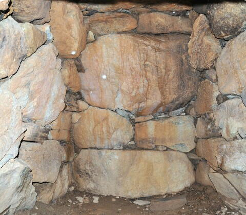 奥壁は巨石を三段積み、側壁は上部で持ち送ってます。