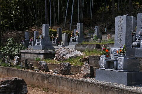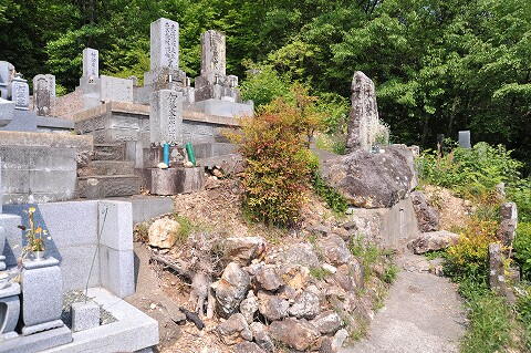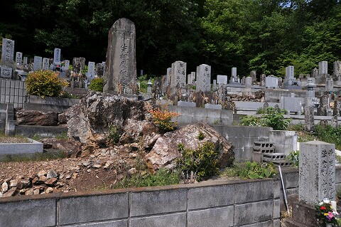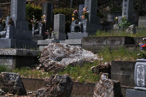 墓地中央付近に石材が露出してます。