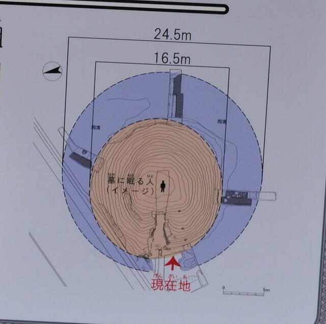 現状は直径16.5mの円墳で、周溝をめぐらせてます。 |