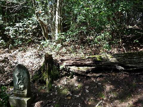 古墳の石室跡に石仏が祀られていて、石仏巡りコース