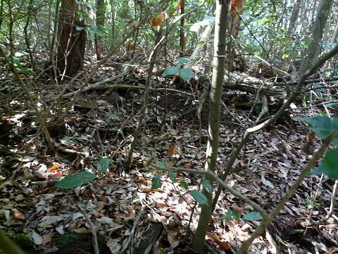 横穴式石室跡?がゴッソリ削られ溝のように。
