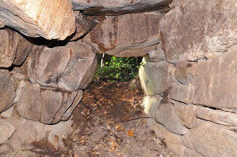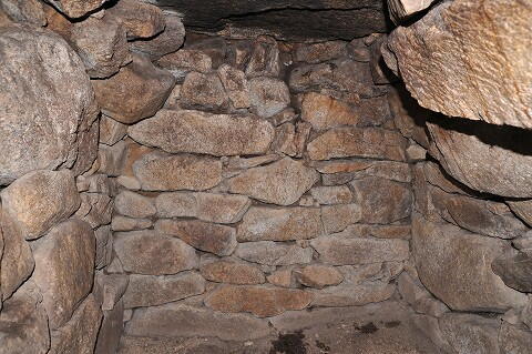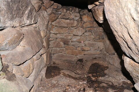 内部もあまり広くありません。 玄室長2.1〜2.3m、奥幅1.7m、玄門幅1.5m、 奥壁高1.6m、玄門高1.2m。 側壁は中央から上部で持ち送り。