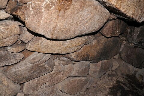 側壁は一転して大きめの石材。 横のラインに沿って積まれてます。 |