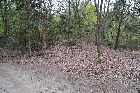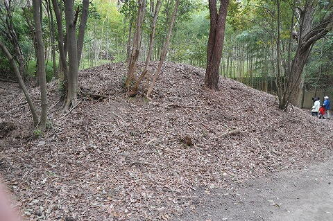 奥に遊歩道を下っていくと、道の両端に墳丘が点々と