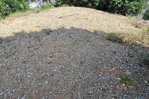 木棺直葬の埋葬主体だそうだが、埋め戻し。 円筒埴輪、須恵器、鉄刀などが出土。 この細かい石は葺き石?