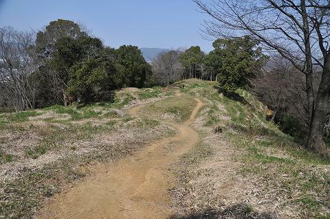 墳頂に石材。