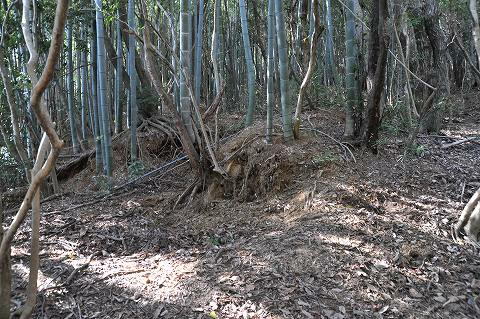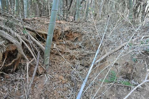 陥没した石室跡。