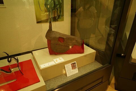 資料館に展示してあった将軍山古墳出土の鉄製馬冑。