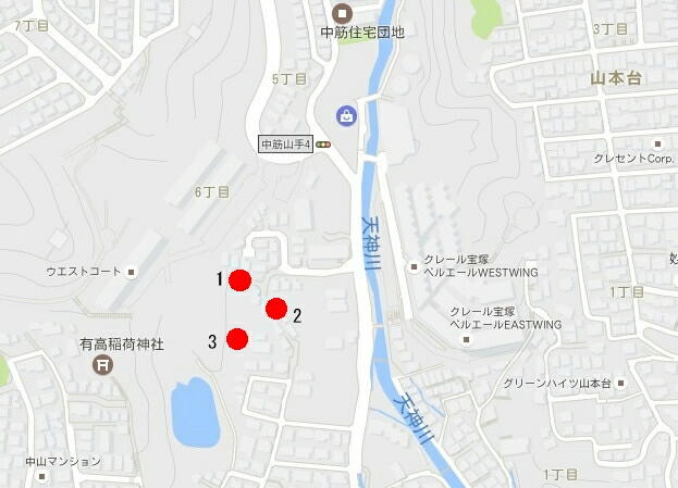 宝塚市中筋山手4丁目、住宅街の中に保存されてる古墳群。