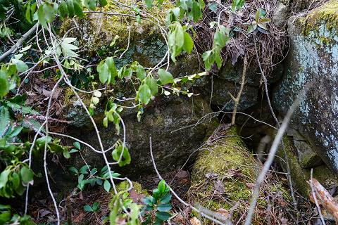 右側壁の石積み。